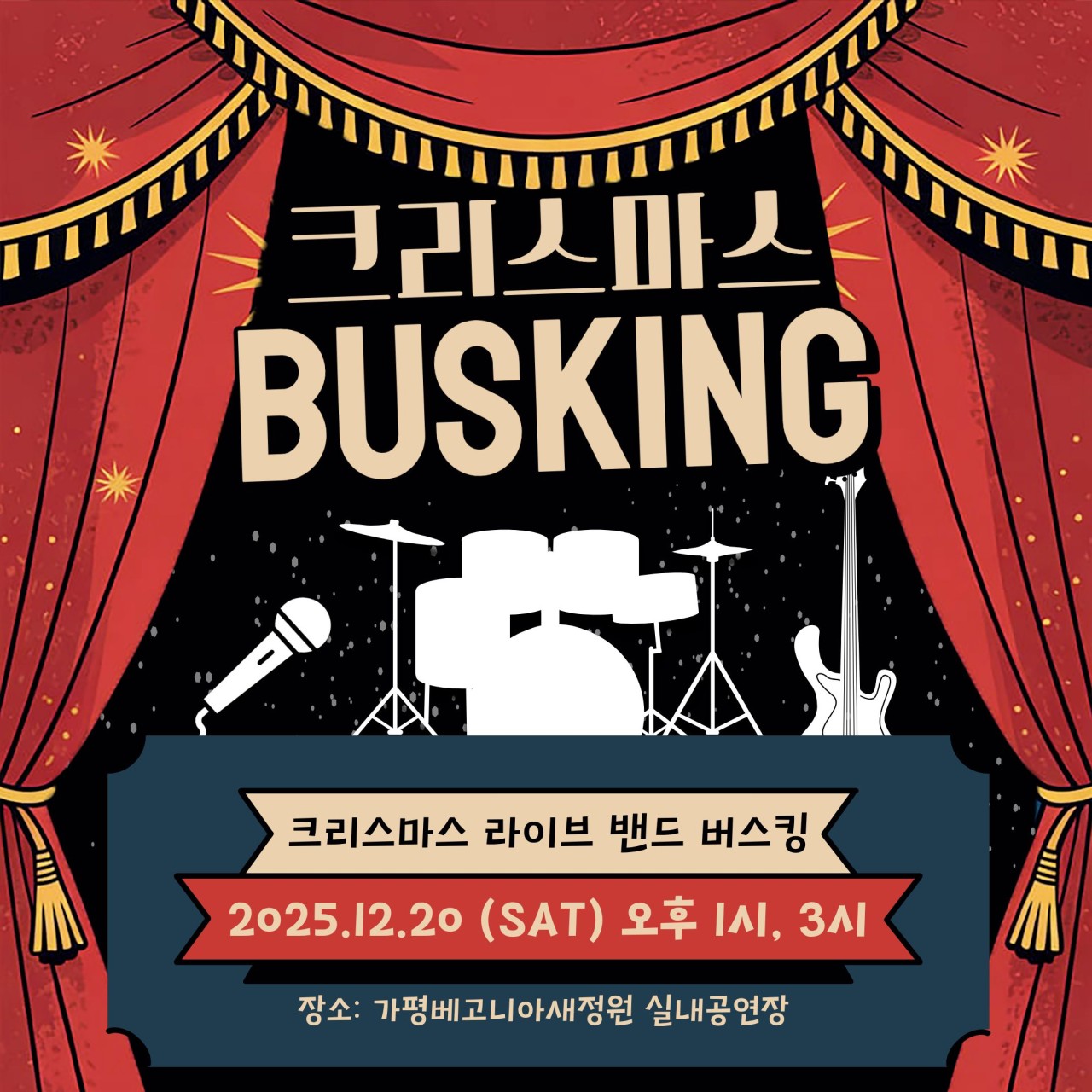 가평 베고니아 새정원 크리스마스 맞이 라이브 밴드 버스킹 일정도 확인하세요.