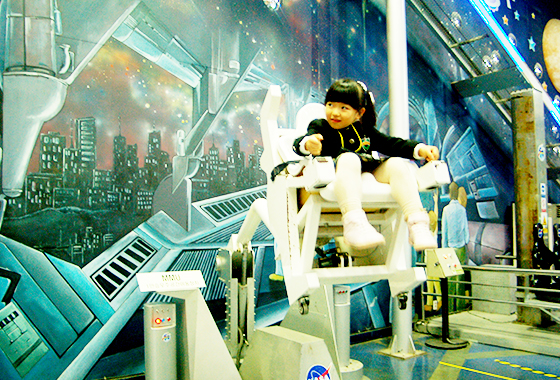 실내 체험기구 존에서는 우주선을 타고 행성을 여행하는 시뮬레이션 기구부터, 중력을 직접 체험하는 트램펄린 형태의 시설 등 아이들의 신체 감각을 자극하는 기구들이 다양하게 마련되어 있습니다. 일부 기구는 키 제한이 있어 영유아는 탑승이 어려운 경우도 있으나, 보호자 동반 탑승이 가능한 기구도 있어 가족이 함께 체험할 수 있습니다.
