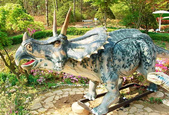 실제 크기에 가까운 공룡 모형들이 숲길 곳곳에 배치되어 있고, 각 공룡 옆에는 이름과 설명이 함께 있어 아이들이 놀이와 학습을 동시에 할 수 있습니다. 공룡 소리나 움직이는 모형도 일부 있어 더욱 실감 나는 체험이 가능합니다.