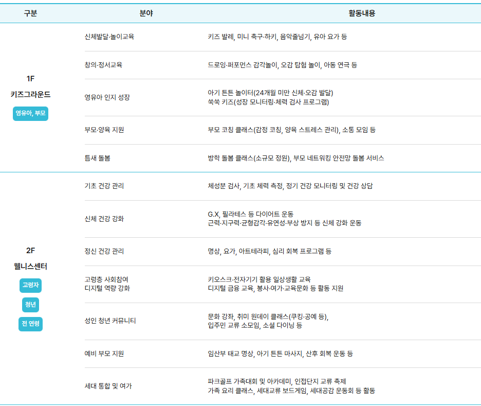 GH 행복주택 단지 내 유휴공간을 활용해 만들어진 이곳은 12개월 아기부터 65세 이상 어르신까지 모든 세대가 즐길 수 있도록 구성되어 있어요. 특히 1층 키즈그라운드는 아이들 발달 단계에 맞춘 전문 놀이 공간으로 주목받고 있답니다.