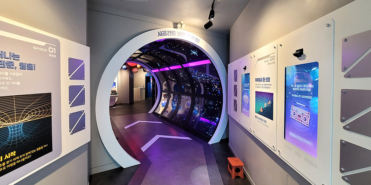 지구에서 출발하여 태양계, 우리은하, 초은하단까지 공간적 관점에서 우주를 탐험하는 전시관이에요. 우주의 광대함을 직접 느낄 수 있는 체험형 콘텐츠가 가득해요.