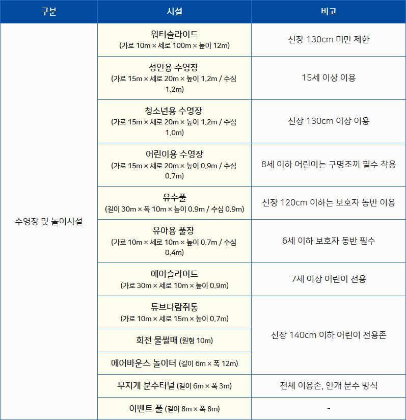 - 다양한 물놀이 시설 💦: 유아풀과 어린이풀, 워터 슬라이드 등 다양한 연령대가 즐길 수 있는 시설이 잘 갖춰져 있어 아이들이 지루할 틈이 없습니다.