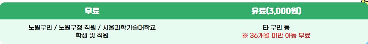 : 무료 - 노원구민, 노원구청 직원, 서울과학기술대학교 학생 및 직원