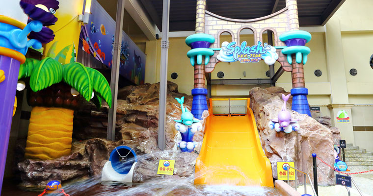- 돌핀키즈존, 스플래시키즈존: 바다생물 조형물, 미니 슬라이드, 물놀이 장난감 등 아이들이 좋아할 만한 테마로 꾸며져 있어요.