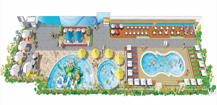 - 유아풀: 수심이 얕고, 미끄럼틀, 워터버켓 등 아기자기한 놀이기구가 있어 36개월 미만 영유아도 안심하고 놀 수 있습니다.
