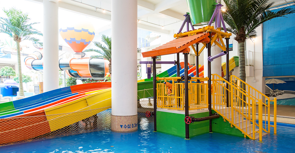 - 키즈풀: 수심이 얕고 미끄럼틀, 워터버켓 등 아이들이 안전하게 놀 수 있는 공간.