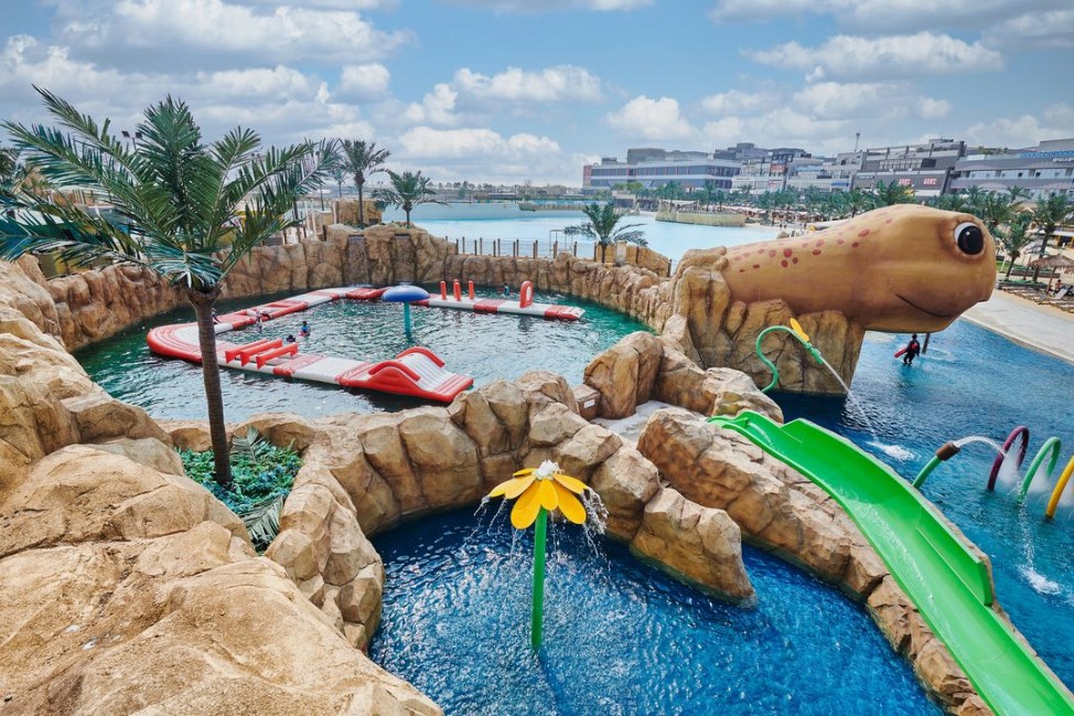 수심이 약 40cm로 얕아서 돌 전후 아기부터 6세까지 아이들이 놀기에 딱 적당해요. 구명조끼 착용이 필수고, 아쿠아슈즈도 꼭 챙겨야 해요. 미끄럼 방지 매트가 바닥에 깔려 있어서 넘어질 염려도 적고, 워터스프레이와 작은 미끄럼틀 등 물놀이 기구가 다양하게 설치돼 있어 아이들이 지루할 틈이 없어요. 안전요원이 계속 지켜보고 있고, 그늘막이 설치된 쉼터가 가까이 있어 아이를 바라보며 쉴 수 있어요.