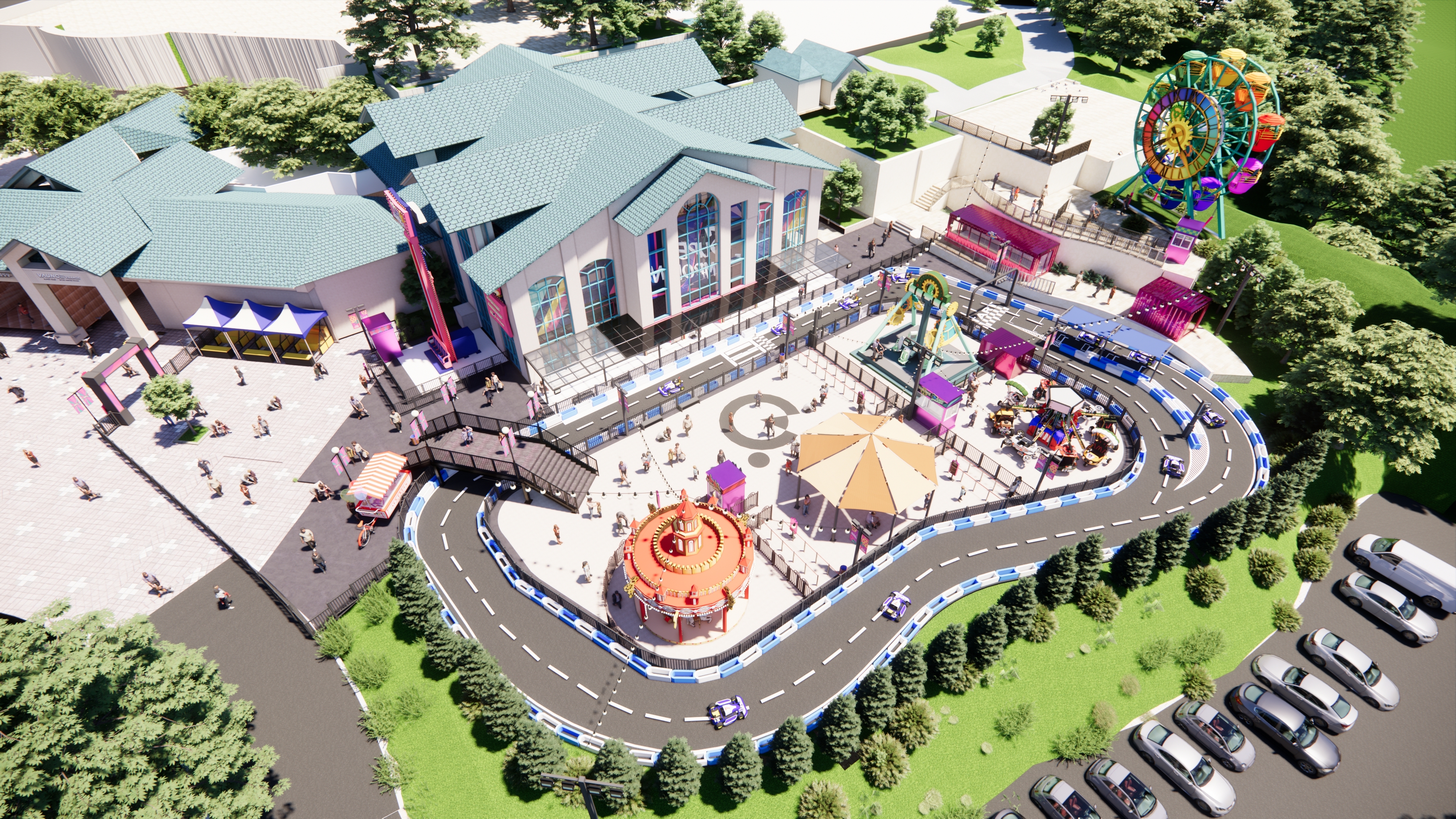 퍼니 팩토리는 강원도 원주에 위치한 오크밸리 리조트 내에 마련된 야외 놀이공원입니다. 넓은 잔디밭과 산속 경관을 배경으로, 아이들이 자연과 어울리며 활동할 수 있도록 설계된 체험형 공간입니다. 시설 대부분이 유아 및 초등 저학년 아동을 대상으로 설계되어 있으며, 보호자가 함께 있을 수 있는 쉼터와 편의시설도 함께 마련되어 있습니다.