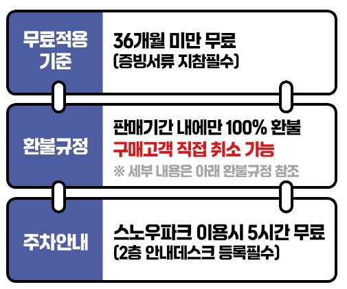 - 개인 물품 보관함: 스노우파크 내부에 개인 물품과 귀중품을 보관할 수 있는 코인 락커가 설치되어 있어요. 500원 동전으로 이용 가능하며, 1,000원과 2,000원 두 종류의 보관함이 있답니다. 불필요한 짐은 맡겨두고 가볍게 즐겨보세요!