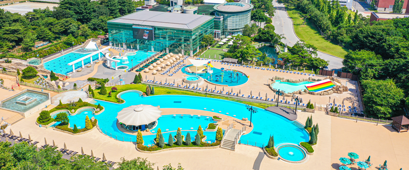 테르메덴은 국내 최대 규모의 독일식 바데풀(수압 마사지풀)과 야외 인피니티풀, 실내외 온천, 마운틴풀, 유수풀 등 다양한 테마풀을 갖추고 있어요.