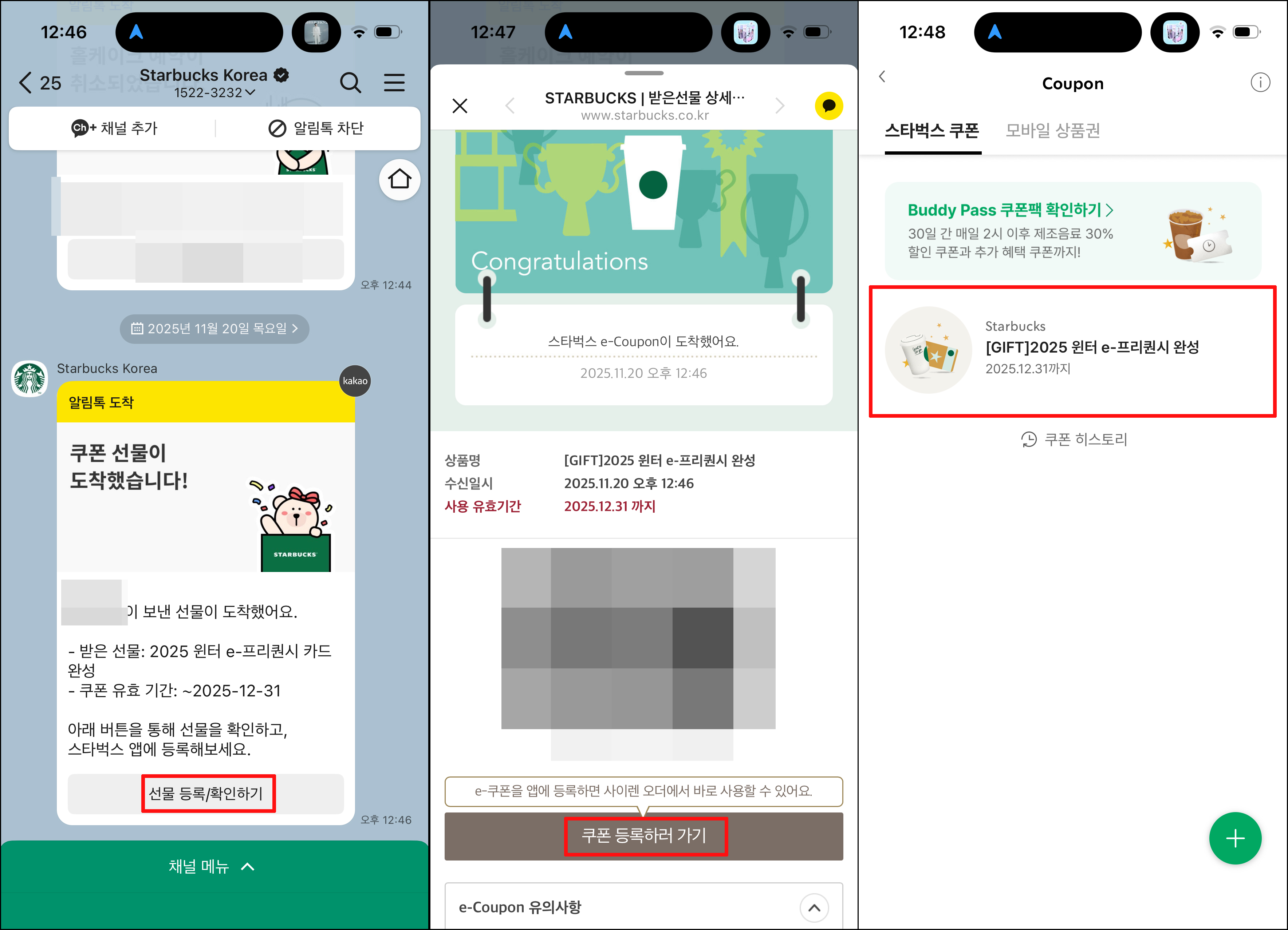 ▼ 선물 받은 사람에게 카카오톡 알림이 옴 > 쿠폰 등록